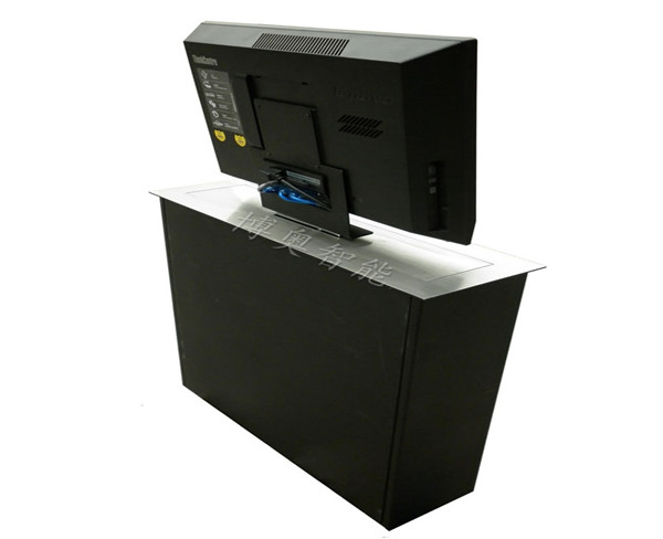 1. During the ascent of the LCD screen, the mounting panel automatically opens, and the LCD screen stands upright on the desktop and automatically turns on the power, automatically tilting to a certain angle.