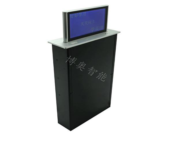 2. Transmission mode: The advanced chain transmission structure is adopted to reduce the noise of gears biting each other and make the mute effect better. Two solid stainless steel guide posts are used on both sides of the lifting frame to escort the smooth lifting of the LCD screen.