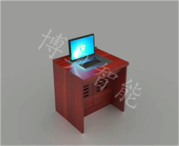 Structure: Each table is equipped with an electric remote control LCD flipper (when using the computer, the LCD automatically flips up and the monitor is automatically powered on, and the keyboard and mouse are raised and lowered to be flush with the table. When the monitor is not in use, the keyboard and mouse are lowered , The display automatically closes), each position has a computer host position, and there is an inspection door in front of the computer desk, which is convenient for line maintenance