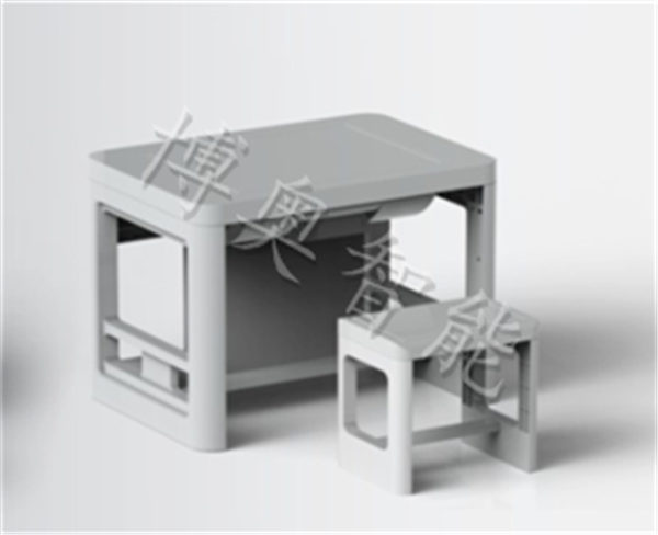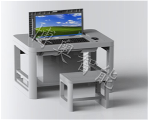2. Material and technology: It is made of corrosion resistance, anti-static, anti-pollution, strong weather resistance and plastic steel processing. All parts are molded by injection molding at one time. The entire exposed corners are treated with large round corners, and the flipper panel is embedded in the table. , The whole is on the same horizontal line, the unlocking display automatically pops up, the keyboard and mouse tray automatically rises, the table is flat when folded, and there is a cloud terminal placement area at the bottom of the flipper, which is injection molded with the flipper at a time. After the cloud terminal is installed Only the interface operation panel is exposed. The thickness of the countertop and the board is 63MM, and the thickness of other parts is 15MM. The built-in wire groove is fully in line with the school safety project.