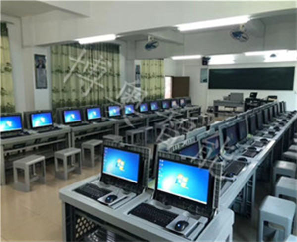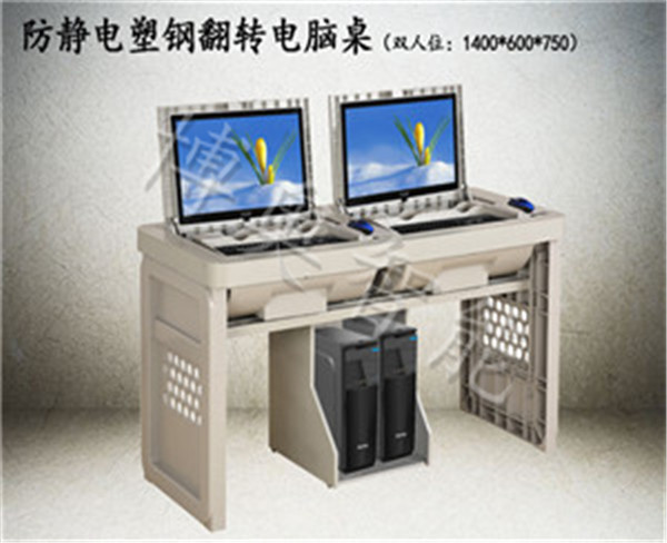 2. Material and technology: It is made of corrosion resistance, anti-static, anti-pollution, strong weather resistance and plastic steel processing. All parts are molded by injection molding at one time. The entire exposed corners are treated with large round corners, and the flipper panel is embedded in the table. , The whole is on the same horizontal line, the unlocking display automatically pops up, the keyboard and mouse tray automatically rises, the table is flat when folded, and there is a cloud terminal placement area at the bottom of the flipper, which is injection molded with the flipper at a time. After the cloud terminal is installed Only the interface operation panel is exposed. The thickness of the countertop and the board is 63MM, and the thickness of other parts is 15MM. The built-in wire groove is fully in line with the school safety project.