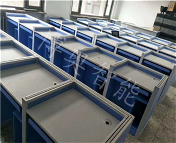 一、屏風升降電腦桌 外語考試專用學生坐席,是現(xiàn)代教學外語考試和專業(yè)培訓場所的必需產(chǎn)品,由升降系統(tǒng)跟傳統(tǒng)電腦桌相結(jié)合而設(shè)計的一款學習培訓考試專用電腦桌,在考試的時候屏風升起,不需要屏風的時候降落,實現(xiàn)了一桌多用,屏風的吸音效果增加了考試的準確性和公平性。
