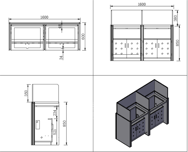 雙人位:長(zhǎng)1600mm*寬600mm*高750MM(屏風(fēng)高850mm+350mm)