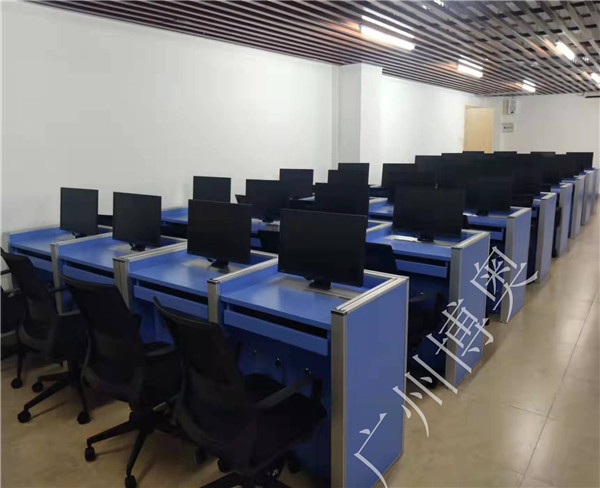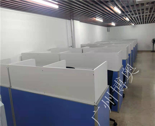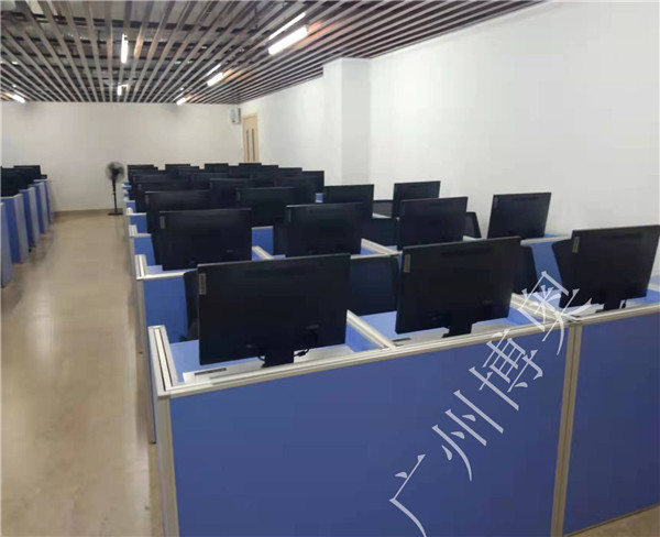 1、升降屏風(fēng)卡座左、右、前三邊帶升降擋板,升降板上沿高于側(cè)板300mm,用于阻隔相鄰考生視線。平時(shí)降下來可做普通計(jì)算機(jī)教室。