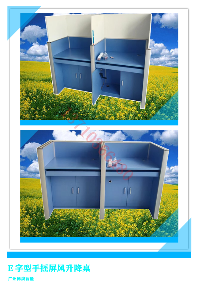 2、升降屏風(fēng)基礎(chǔ)高度850MM,臺(tái)面高度750MM,內(nèi)部升降屏板采左、中、右、前四邊升降擋板,升降板行程為350mm,升起后總高度為120MM,用于阻隔相鄰考生視線,平時(shí)降下來(lái)可做普通計(jì)算機(jī)教室,整套產(chǎn)品實(shí)現(xiàn)電教智能化,起到防作弊考試,獨(dú)立操作防干擾防靜音效果。(提供整張桌子檢測(cè)報(bào)告,國(guó)標(biāo)GB/T3325-2017/國(guó)標(biāo)BG18584-2001,且?guī)Ф⒋a標(biāo)志)