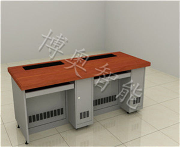 結(jié) 構(gòu):每張桌子配置電動遙控液晶升降機(jī)(當(dāng)時電腦時液晶顯示器自動重桌底升起且顯示器自動通電,當(dāng)不使用顯示器時,顯示器自動隱藏于桌底),每一個位置都有一個電腦主機(jī)位,電腦桌前面設(shè)有檢修門,方便線路維修。