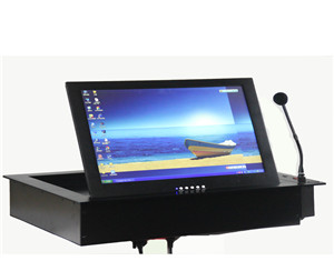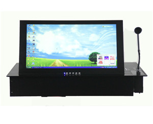10、.超薄液晶屏帶常用VGA,HDMI接口,顯示屏框架為整體鋁合金CNC一次開模成型,超薄弧形設計,顯示器與升降器無螺絲邊接孔,無外露邊接線,自帶電腦主機啟動開關,更方便會者操作,接線方式由底朝上接,方便工程布線。