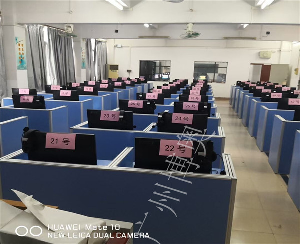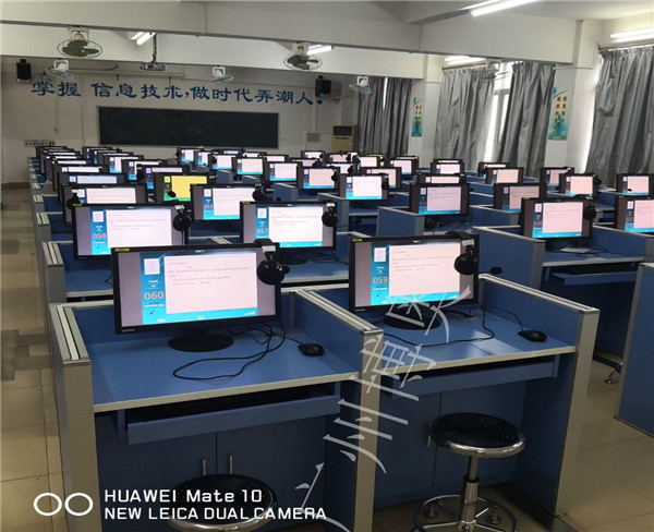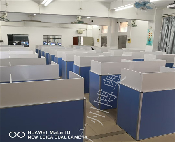 1、升降屏風(fēng)卡座左、右、前三邊帶升降擋板,升降板上沿高于側(cè)板300mm,用于阻隔相鄰考生視線。平時(shí)降下來(lái)可做普通計(jì)算機(jī)教室。